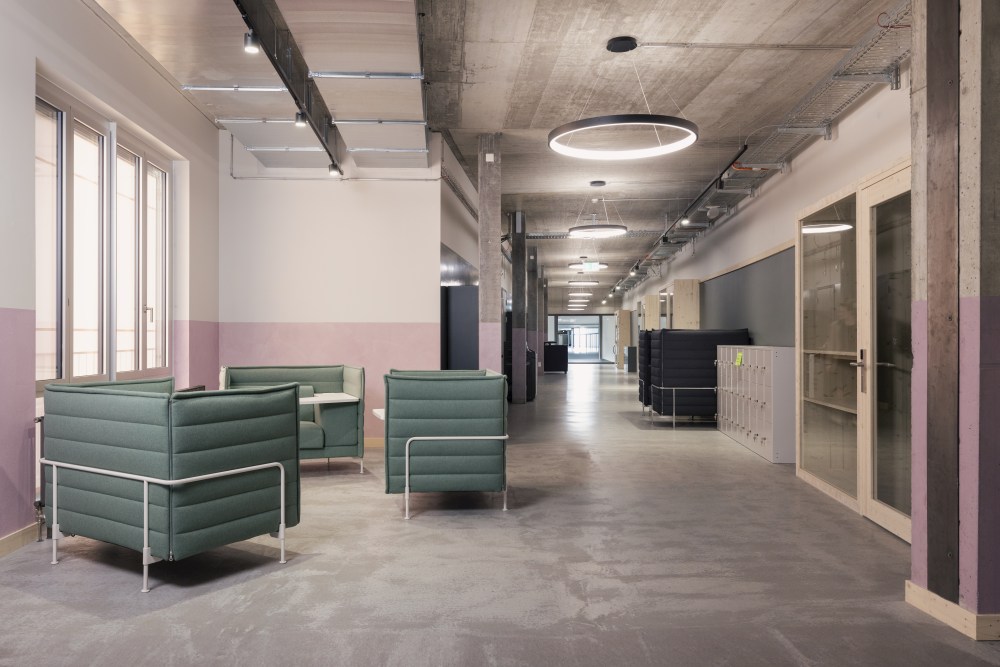 Zu Beginn des Projekts wurde Vitra hinzugeholt, um die konzeptionellen Leitgedanken aus den Lehr- und Unterrichtsräumen auf die Arbeitsbereiche zu übertragen und den Veränderungsprozess aktiv zu begleiten. Ziel war es, im Unterricht neue Flexibilität zu ermöglichen und diese auch in die Arbeitsräume der Lehrpersonen zu übertragen. Fachübergreifender Austausch sollte gefördert und mehr Schnittstellen zwischen Studierenden, Lehrpersonen und Mitarbeitenden geschaffen werden. Zudem sollte ausreichend Stauraum entstehen, denn Arbeit und Wissen sollten sichtbar werden.